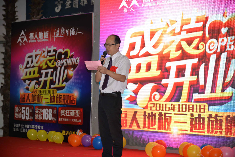 其次,由红星美凯龙商场总经理王超先生致辞。王总表示:福人地板是中国十大品牌,是福建地板的第一品牌,在秉承传统工艺的基础上,把绿色健康的生活理念发挥得淋漓尽致。红星美凯龙在完善自身服务的同时,也对绿色环保健康十分重视。这次福人地板重装开业,将会为我们广大福州消费者带来真正的家居健康环境。红星美凯龙将秉承集团所有服务,依托集团在国内家居中拥有的巨大优势,为广大商户提供全方位多角度的立体化营销策略,不断创造出更多精彩和奇迹!