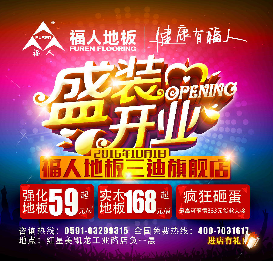 10月1日,三迪旗舰店盛大开业是福人地板雄踞福州市场版图的又一大举措,此次进军红星美凯龙将大大方便广大福州业主购买地板,无需东奔西走;