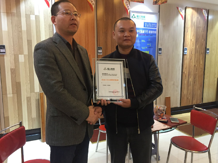 葛总为湘潭福人颁发”全国十佳金牌经销商“奖牌