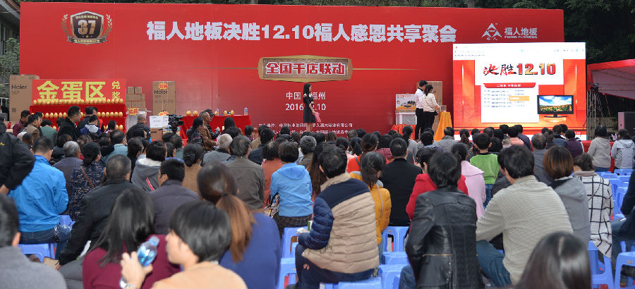 2016年12月10日,福人地板"决胜1210"感恩共享聚惠团购活动完美落幕!在这特殊的日子里,福人地板为家装用户们献上一场地板的饕餮盛宴,高品质多款式的地板品类,比平常市面更加优惠的价格,贴心周到的服务,大大提高了消费者的采购热情。福建电视台经济频道《完全家装》栏目、福建电视台《与法同行》对本次活动全程报道。