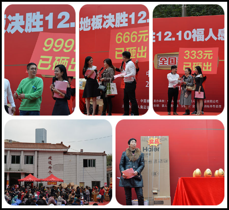 为更好的感谢消费者长期以来的支持和厚爱,在此次的团购活动上,福人地板设置了多个送礼环节,抽奖、砸金蛋轮番上演,掀起了一次又一次的高潮。值得一提的是,奖品不仅包含了冰箱、电视机、微波炉等家电大奖,砸金蛋更有现金999元大奖,如此大手笔的好礼,也足以见得福人地板对于此次活动的诚意。