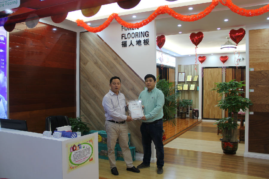 惠州刘总于2009年开始经营福人地板,从最开始的地板门外汉,到现在成为广东销售业绩最好的经销商,与刘总的坚持与沉淀密不可分,刘总竭尽全力为顾客服务,想客户之所想,急客户之所急,耐心细心的服务好每一位顾客,使福人地板在惠州市场拥有了极大影响力。惠州福人荣获“十佳专卖店”荣誉称号。