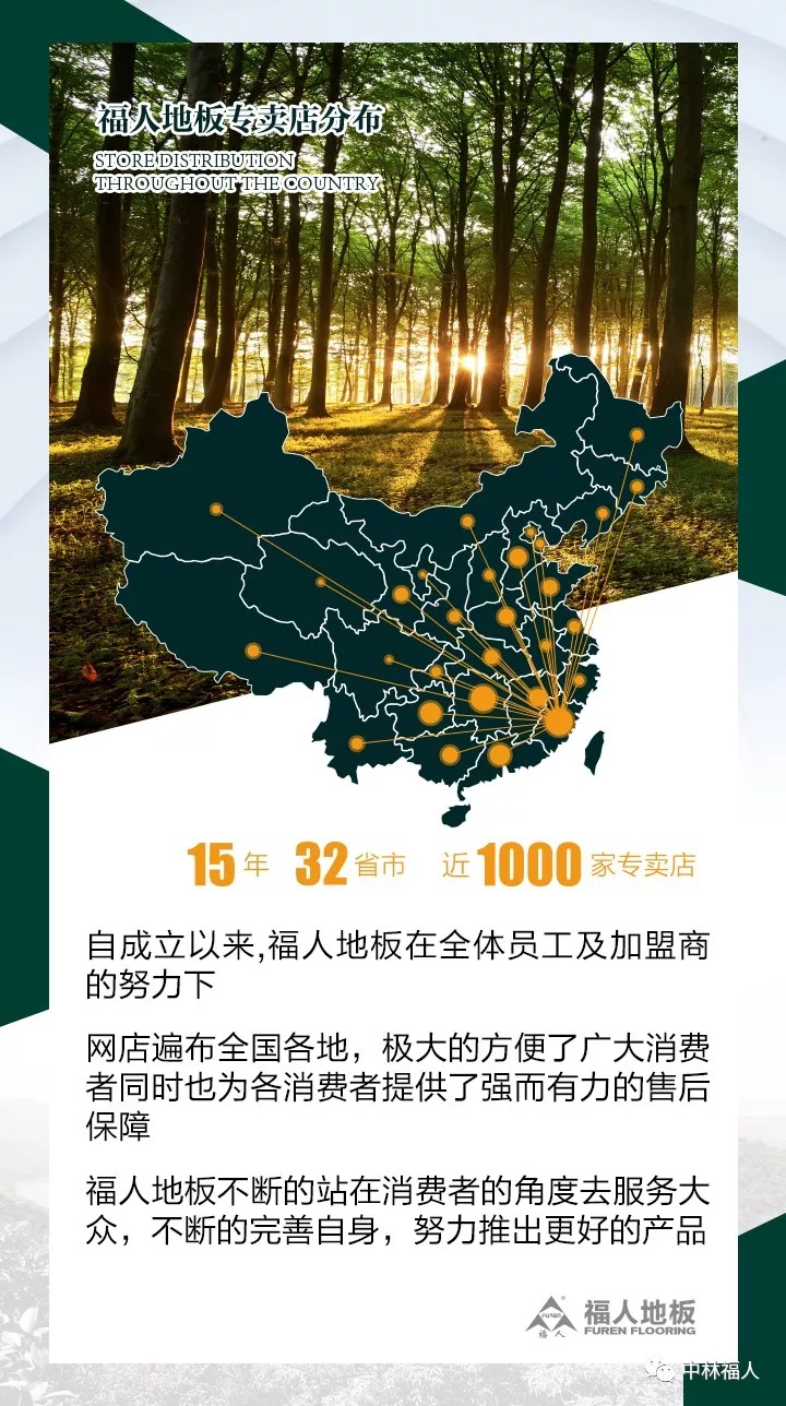 39年的岁月,39年的辉煌,39年的福人地板用实力打造了一个显眼的地板行业名片,感谢消费者对福人品牌的支持与理解,作为中国地板行业的领军品牌,福人地板一直致力于构建和谐的消费环境,倡导人与自然的和谐。福人地板也将继续积极主推中国地板行业发展、为社会和谐、人类幸福、生态良好奉献自己的力量,实现福人地板品牌价值跨越式提升。