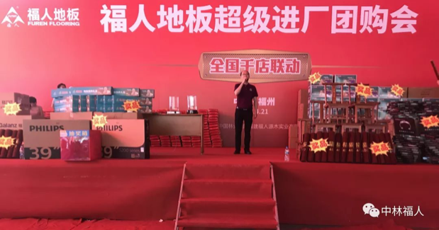 此次团购会由福人地板销售总监石开洪上台致辞开幕,石总首先感谢广大新老顾客一直以来对福人地板的关心与支持,2019年正值福人建厂40周年,公司将会拿出史上最大的优惠力度回馈广大消费者,并对地板的品质做了承若,福人国企品质,值得信赖!
