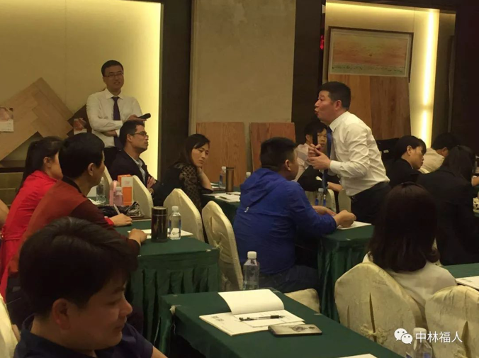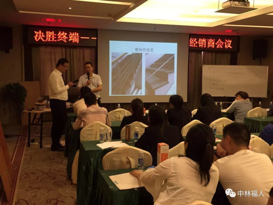 福人地板销售副总监洪鼎忠进行强化性能实验、实木产品知识及售后服务培训。洪总从市场大环境入手,着重讲解了实木安装、实木售后处理及保养维护等知识。尤其是实木售后处理,一定要到现场勘查、分析问题、寻找原因、辨别结果、才能解决问题。