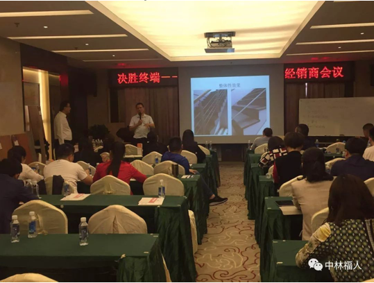 中国林业集团福建福人源木实业有限公司市场部总监葛旭东进行新品介绍。2019年正值福人建厂40周年,公司重磅推出多款新品。更加环保的无醛地板;更耐磨、经济实惠的新型楼梯踏步;有别于传统拼花地板,独一无二的地板拼花等。葛总形象、生动的为经销商朋友一一介绍,讲解。