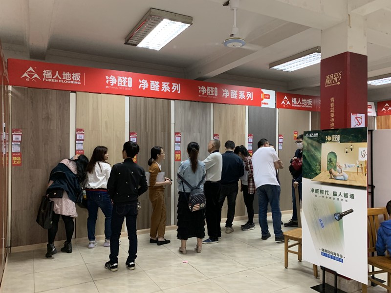 此次团购会以“五一‘净芯’购,无醛更健康”为主题。在越来越重视生活居住环境健康的今天,福人地板以全线E0级板材,向消费者倡导一种无醛健康的生活方式,这一产品观受到现场消费者的一致认同。特别是今年全新升级的净醛系列,根据最新国家相关环保标准,在达到F4星标准的基础上健康再度升级,加入抗菌成分,能有效杀灭细菌,持久地抑制细菌生长,抗菌率能达到99%。在现场大家讨论最多的就要算这款“能抗菌的净醛地板”了。其超强的人气成为全场聚焦的亮点。