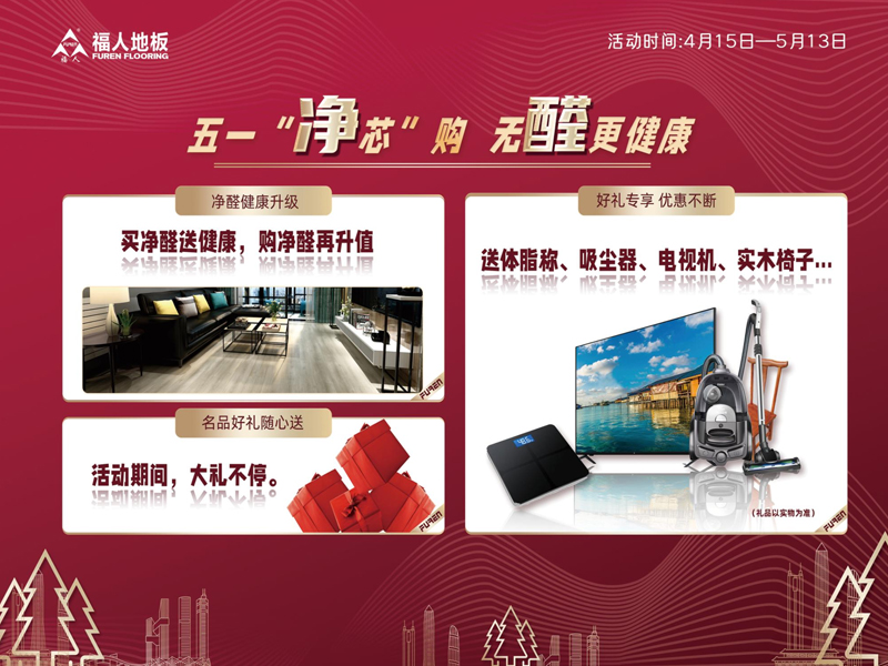 据悉此次福人地板【五一“净芯”购】活动将一直持续到5月13日,全国各大门店都有众多优惠等着大家,欢迎大家五一期间到附近门店选购。