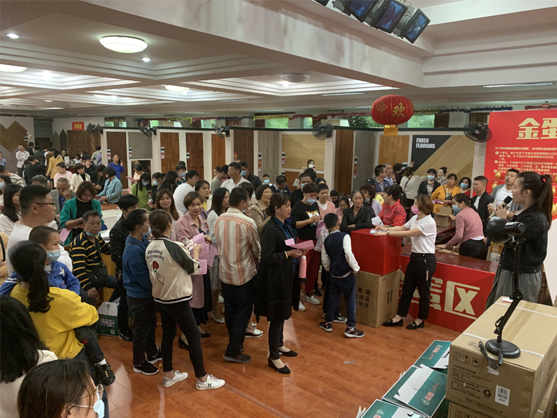 活动现场福人地板不仅为消费者准备了品质过硬的产品,工厂直供价,更有超多福利:认购下单就有礼、金蛋砸不停、还有终极大抽奖,现场火爆非凡。短短两个半小时的团购会吸引了数千人咨询及下单。